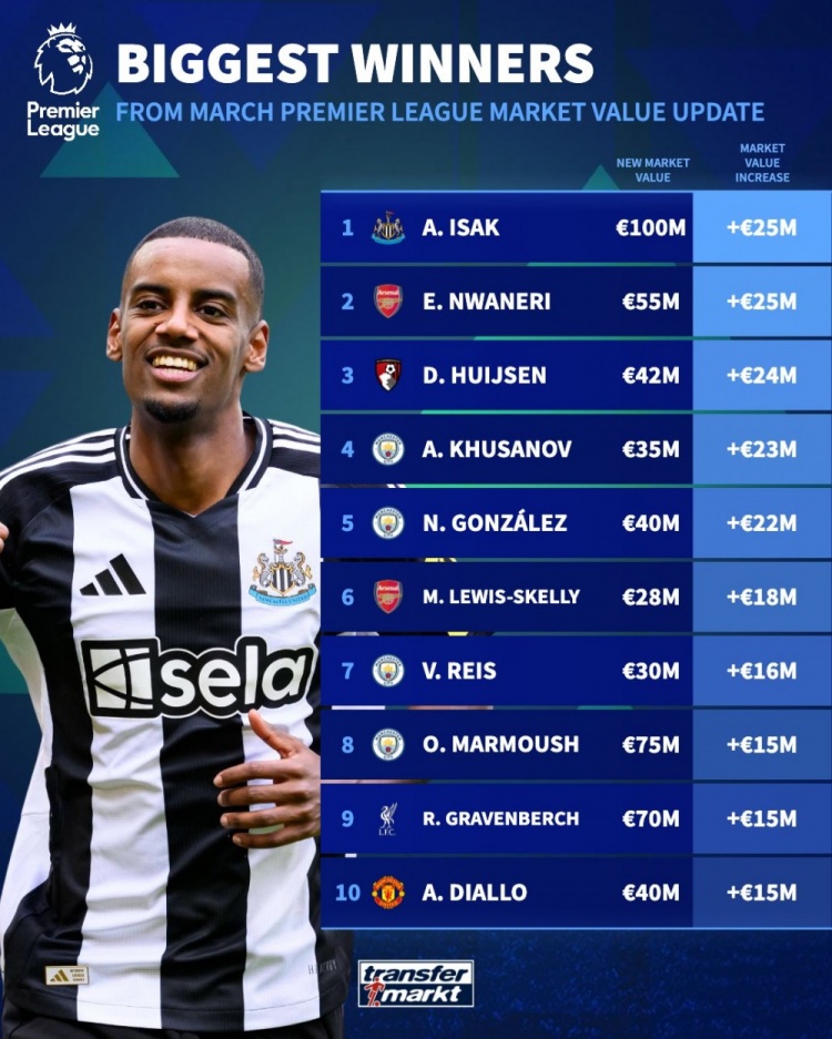 04月07日讯 英超进行到第31轮,欧冠资格争夺激烈。森林57分暂排第三,切尔西53分第四,曼城52分第五,维拉51分第六,纽卡少赛两场50分第七。英超下赛季有望获得...