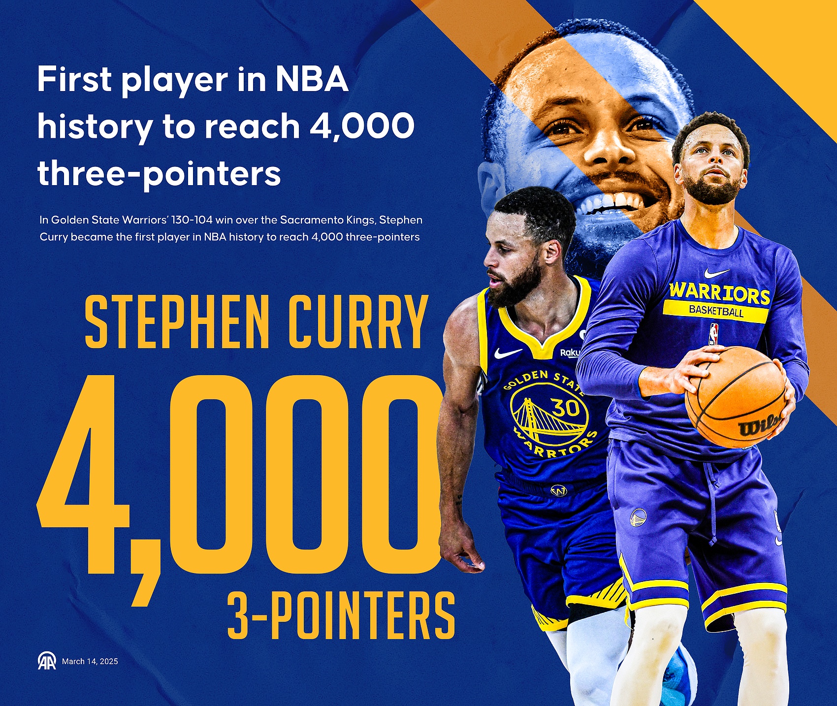 斯蒂芬-库里刚刚创造了4000记三分球的纪录。而自从库里的金州勇士队得到吉米-巴特勒以来,他们取得了13胜1负的战绩,并冲到了西部第六的位置。