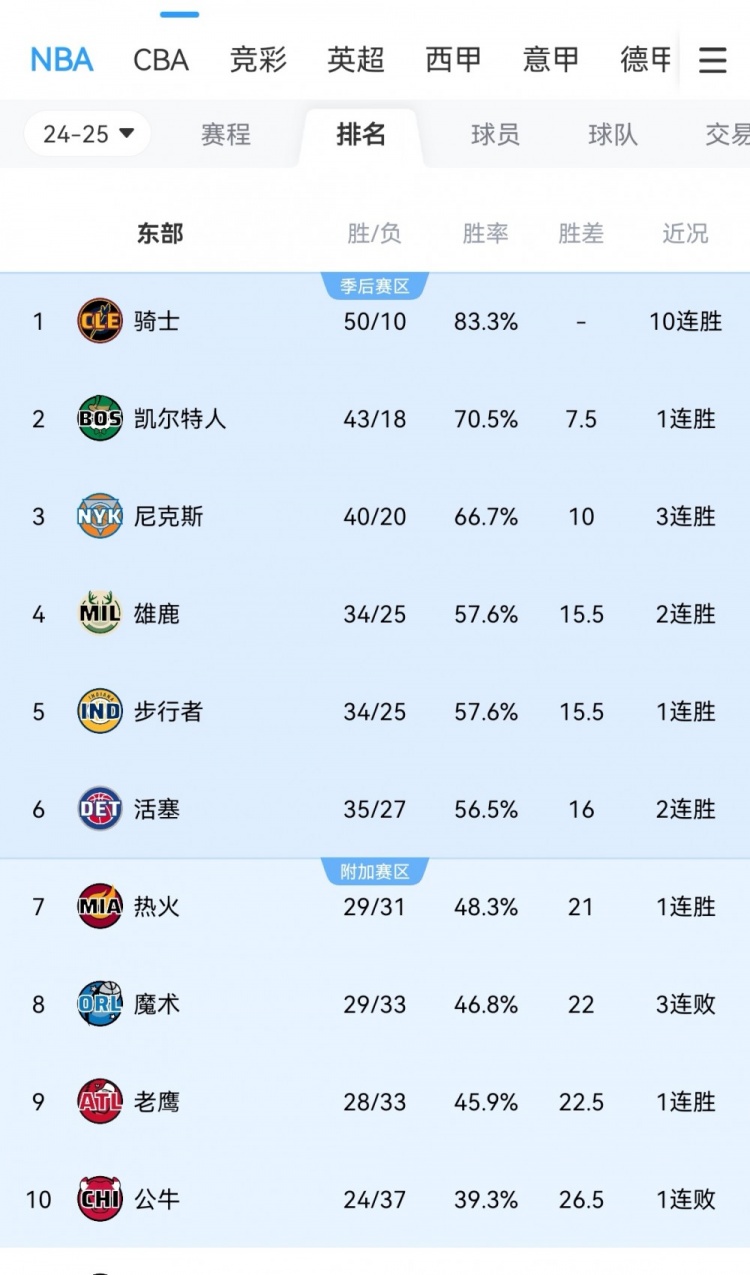 高歌猛进!活塞近11场赢了10场 稳居东部第6&和第4&第5都仅差半场