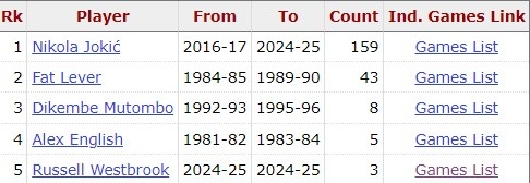 本场是威少加盟掘金以来第4场三双,这已经能排到掘金队史三双榜前5。
