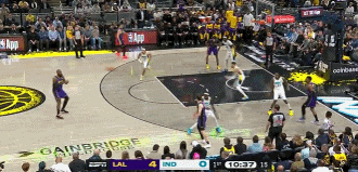 奋起直追!马瑟林和内史密斯相继命中三分 步行者追到2分打停湖人