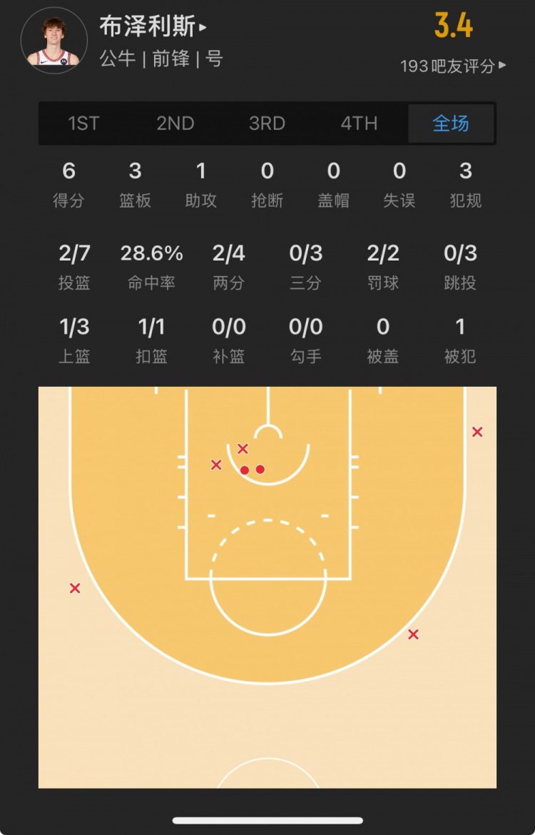 公牛11号秀 马蒂斯-布泽利斯 登场14.6分钟