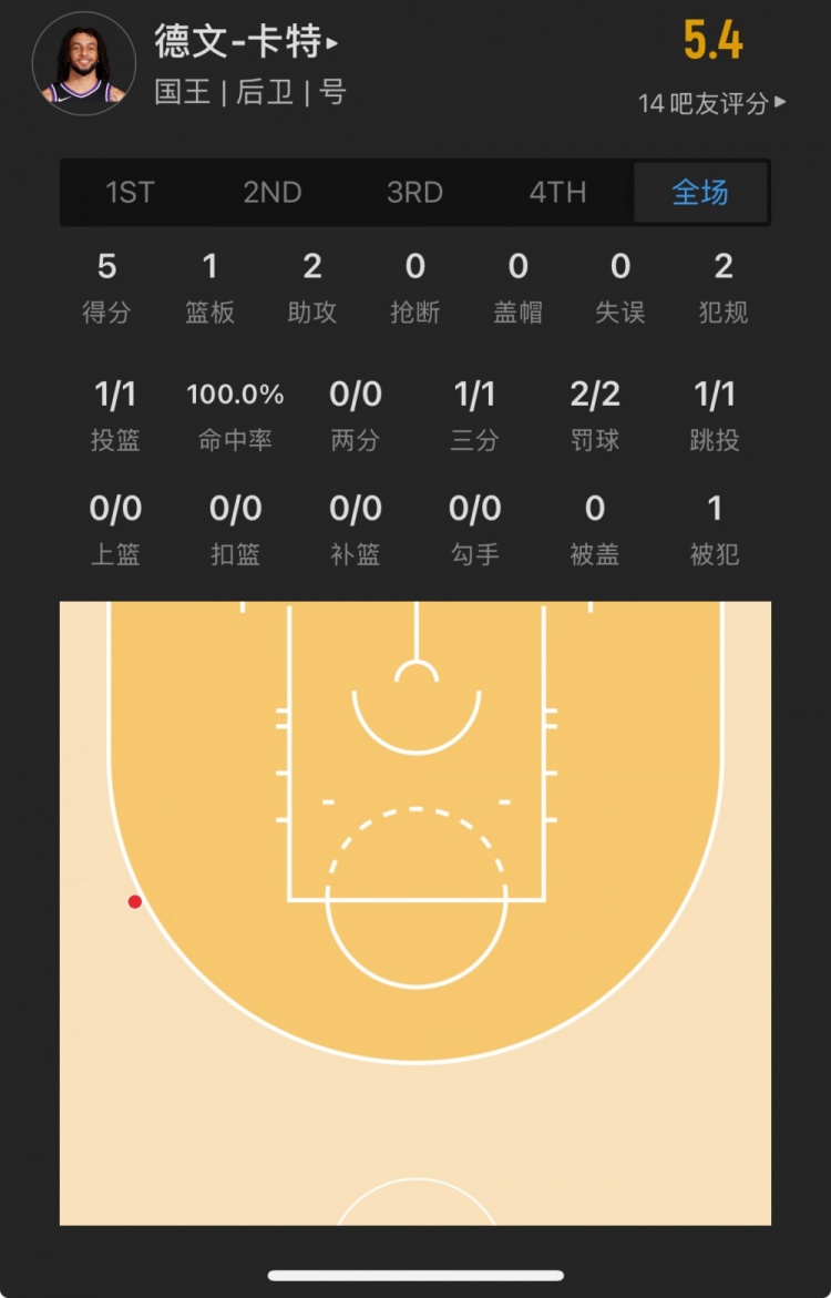 国王13号秀 德文-卡特 登场7.4分钟