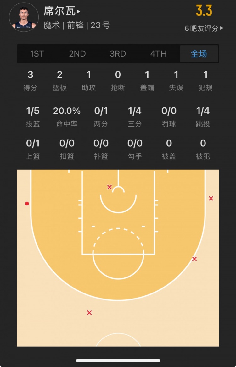 魔术18号秀 特里斯坦-达-席尔瓦 登场16.6分钟